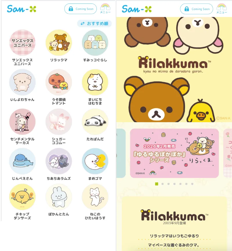Thank you for always visiting the official San-X website “San-X Net.” This time, San-X Net has been renewed ♪