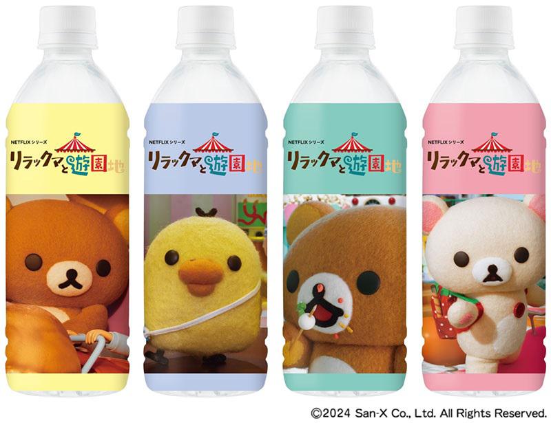 「リラックマの天然水(通販限定)」は、ストップモーションアニメ「リラックマと遊園地」のシーンを切り取った全4種のパッケージ♪