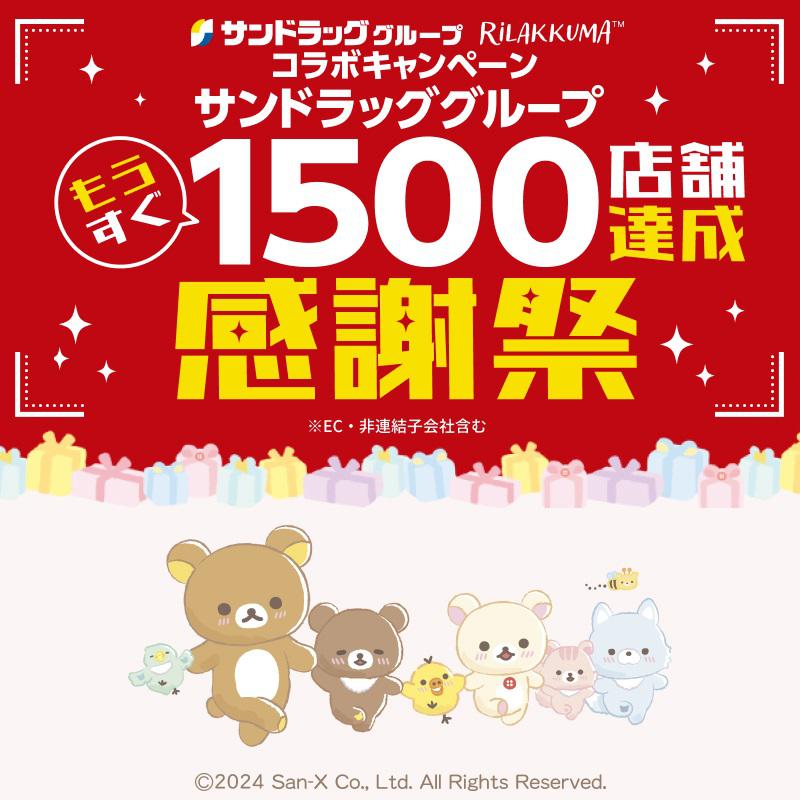 「サンドラッググループ もうすぐ1500店舗達成感謝祭」キャンペーンの詳細はこちら ▽