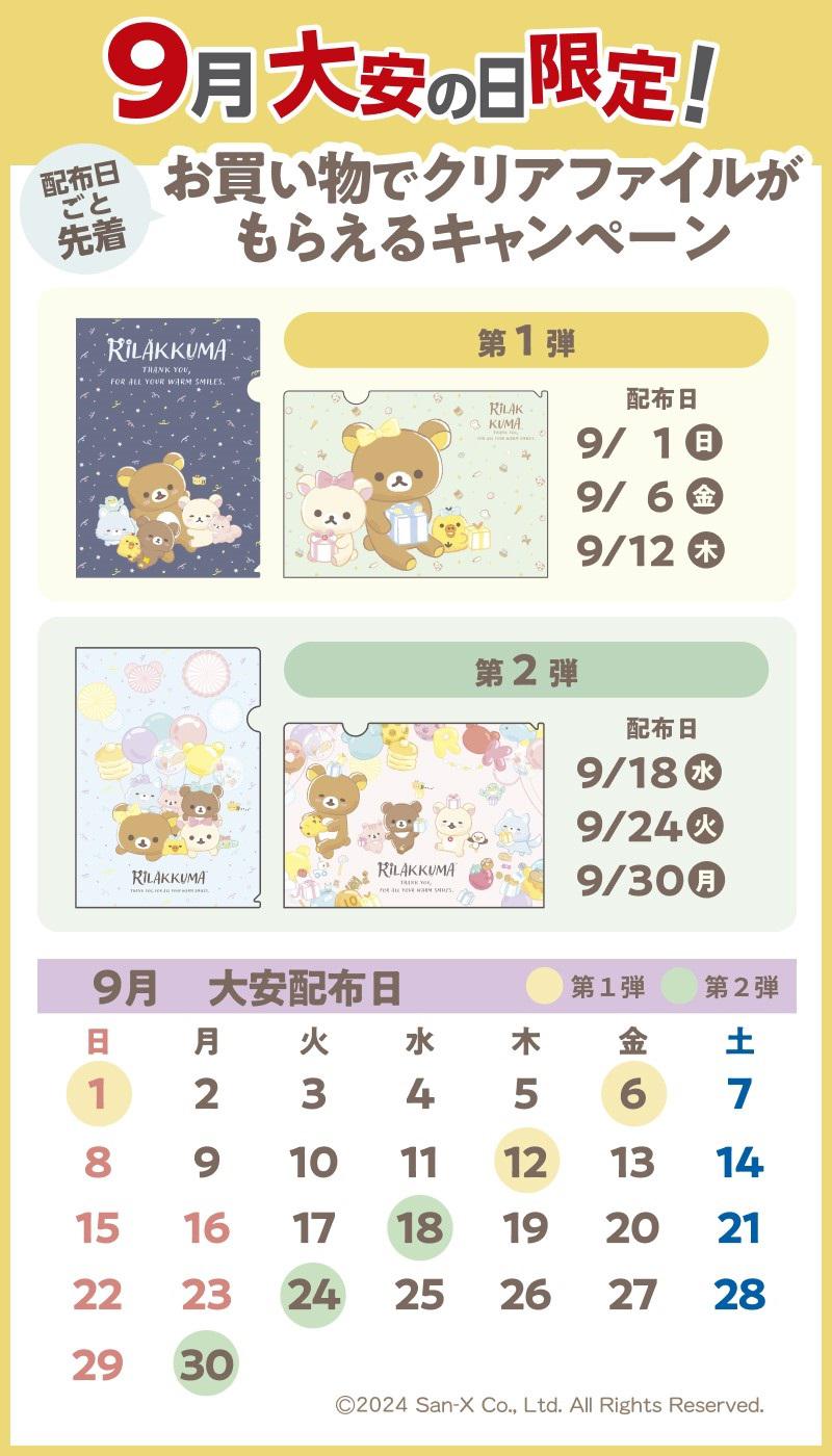 ??9月の大安の日限定!お買い物でクリアファイルがもらえるキャンペーン