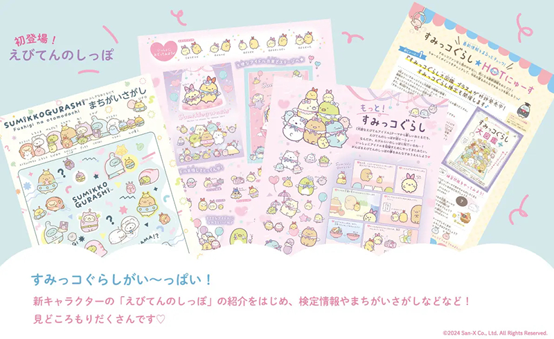 スペシャル付録のポケットポーチをはじめ、新テーマの「天使なえびてんアイドル」や、まちがいさがし、占いやとじこみ付録など、すみからすみまですみっコぐらしが盛りだくさんの1冊です。