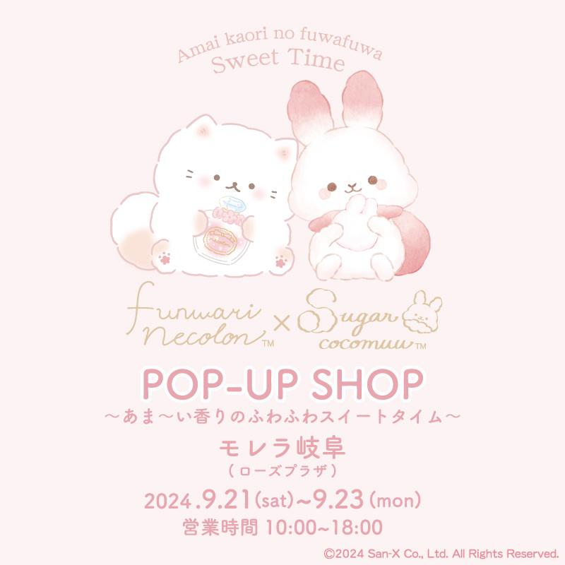 あまいお花のかおりがする「ふんわりねころん」、甘えんぼうのわたあめうさぎの「シュガーココムー」のPOP UP SHOPを2024年9月21日(土)よりモレラ岐阜にて開催予定です。