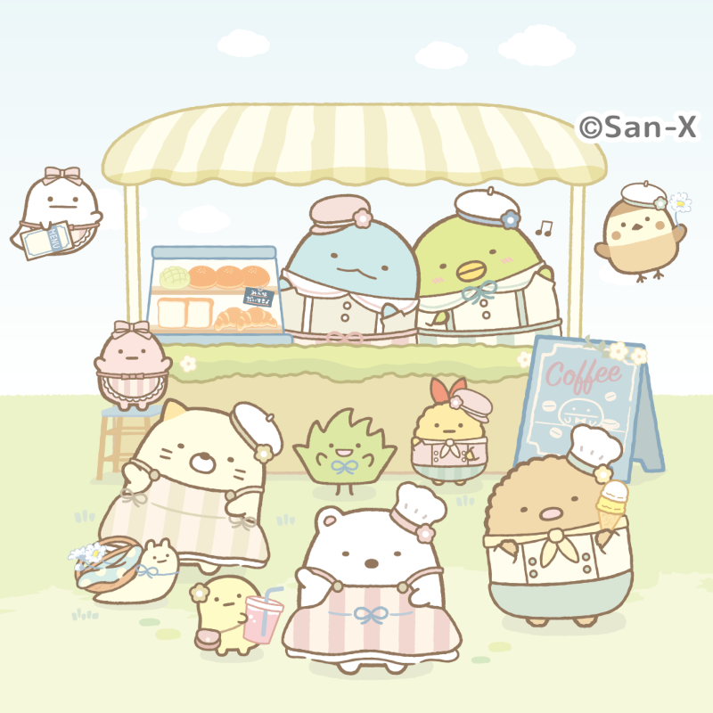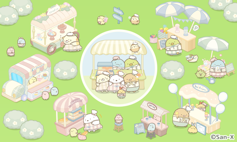 すみっコぐらし展で登場する特別なエプロン姿をきせかえガチャやそれぞれのお店をデコ化!