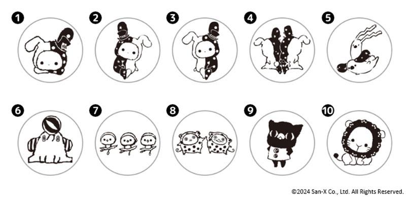 手品と手芸が得意な団長・シャッポや、シャッポの相棒でジャグリング担当・トト、のんびり屋さんの曲芸担当・ムートン、おしゃまな黒猫の玉乗り担当・クロ、とっても優しい輪くぐり担当・リオなど、ちょっぴりセンチメンタルなキャラクターイラストは全10種類から選べます。