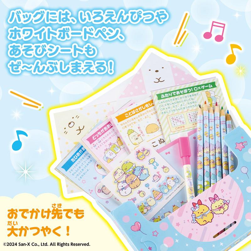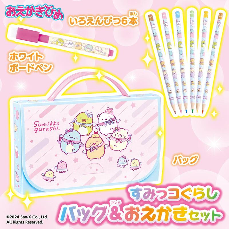 アイドル衣装に身を包んだすみっコたちがかわいい、『おえかきひめ』オリジナルデザインのバッグ&文具セットです。