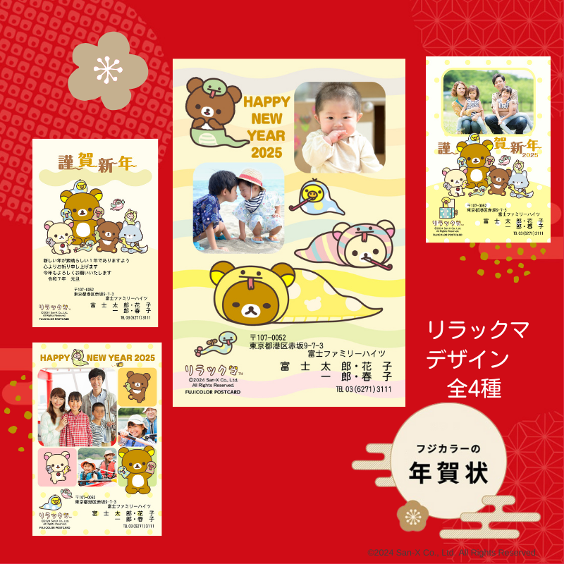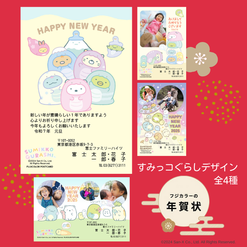 富士フイルム公式「フジカラーの年賀状」に、リラックマとすみっコぐらし、たれぱんだのデザインが登場♪