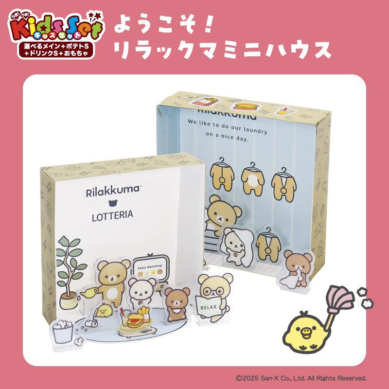 ロッテリアの「キッズセットメニュー」に、親子で遊べるリラックマのおもちゃ(全3種のうち1種)が付いた特別なセットです。