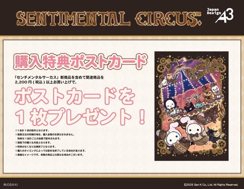 さらに「センチメンタルサーカス」新商品を含めて関連商品を2,200円(税込)以上お買い上げで、特典ポストカード(全1種)を1枚プレゼント♪