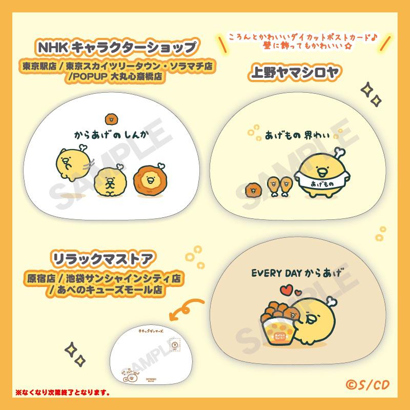 ※「からあげ☆あげあげSHOP」の開催店舗では、税込1,100円以上のお買い上げで「POP-UP SHOP限定ノベルティ」と「なんだかこころもおどるん店頭キャンペーンノベルティ」をどちらもプレゼントいたします。