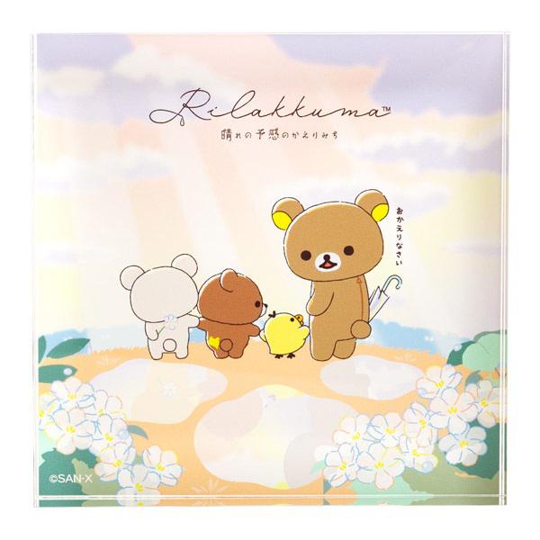 リラックマの新テーマ「雨のち晴れのリラックマ」のアートを使用したアクリルブロックをご用意しました。