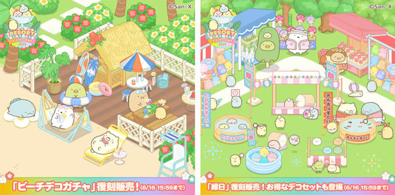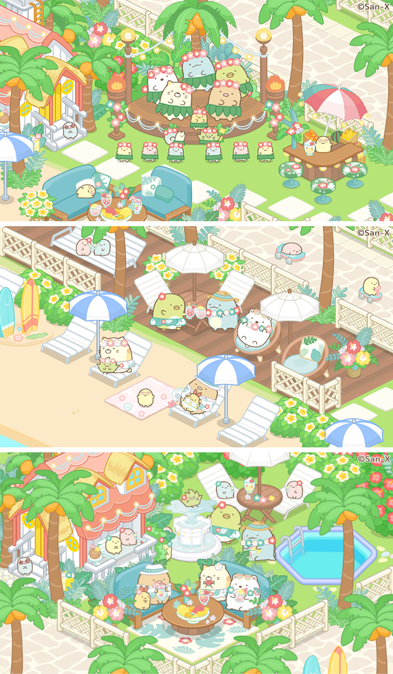 "リゾート"をテーマに、すみっコたちがバカンスを楽しむかわいいデコがゲーム内に新登場!