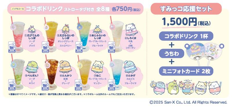 「コラボドリンク1杯」+「うちわ」+「ミニフォトカード2枚」がセットになった「すみっコ応援セット」も販売!!