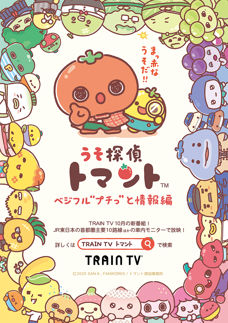 2025年10月6日(月)『うそ探偵トマントベジフル"プチっ"と情報編』が、電車の中のテレビ局 TRAIN TVRにて放映開始となります!