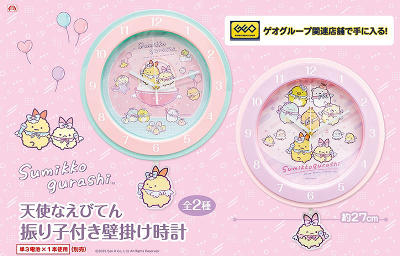 【すみっコぐらし 天使なえびてん 振り子付き壁掛け時計】