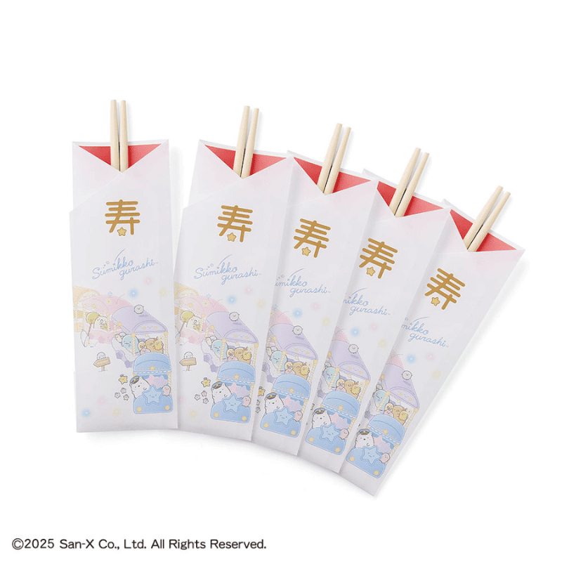 皆で仲良く電車に乗っているデザインの祝い箸5膳付き