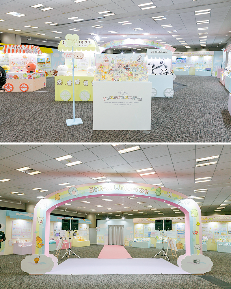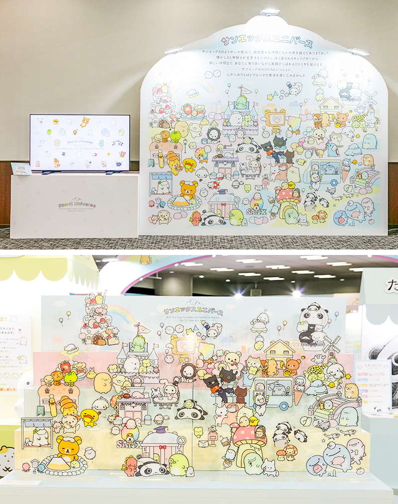 街をイメージして彩られた可愛らしい会場では「リラックマ」「すみっコぐらし」「たれぱんだ」などおなじみのキャラクターに加え、「まいにちはむちま」や「うそ探偵トマント」といった新しいキャラクターたちもたくさん紹介されました。