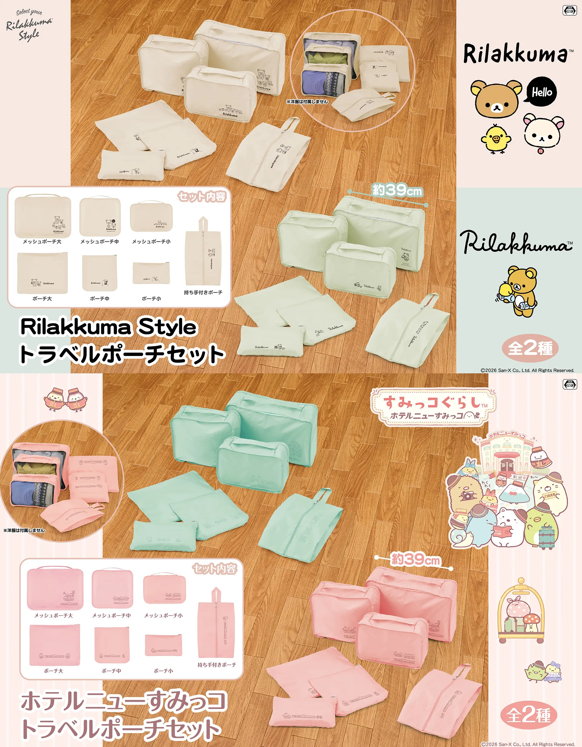 【リラックマ Rilakkuma Style トラベルポーチセット】 【すみっコぐらし ホテルニューすみっコ トラベルポーチセット】
