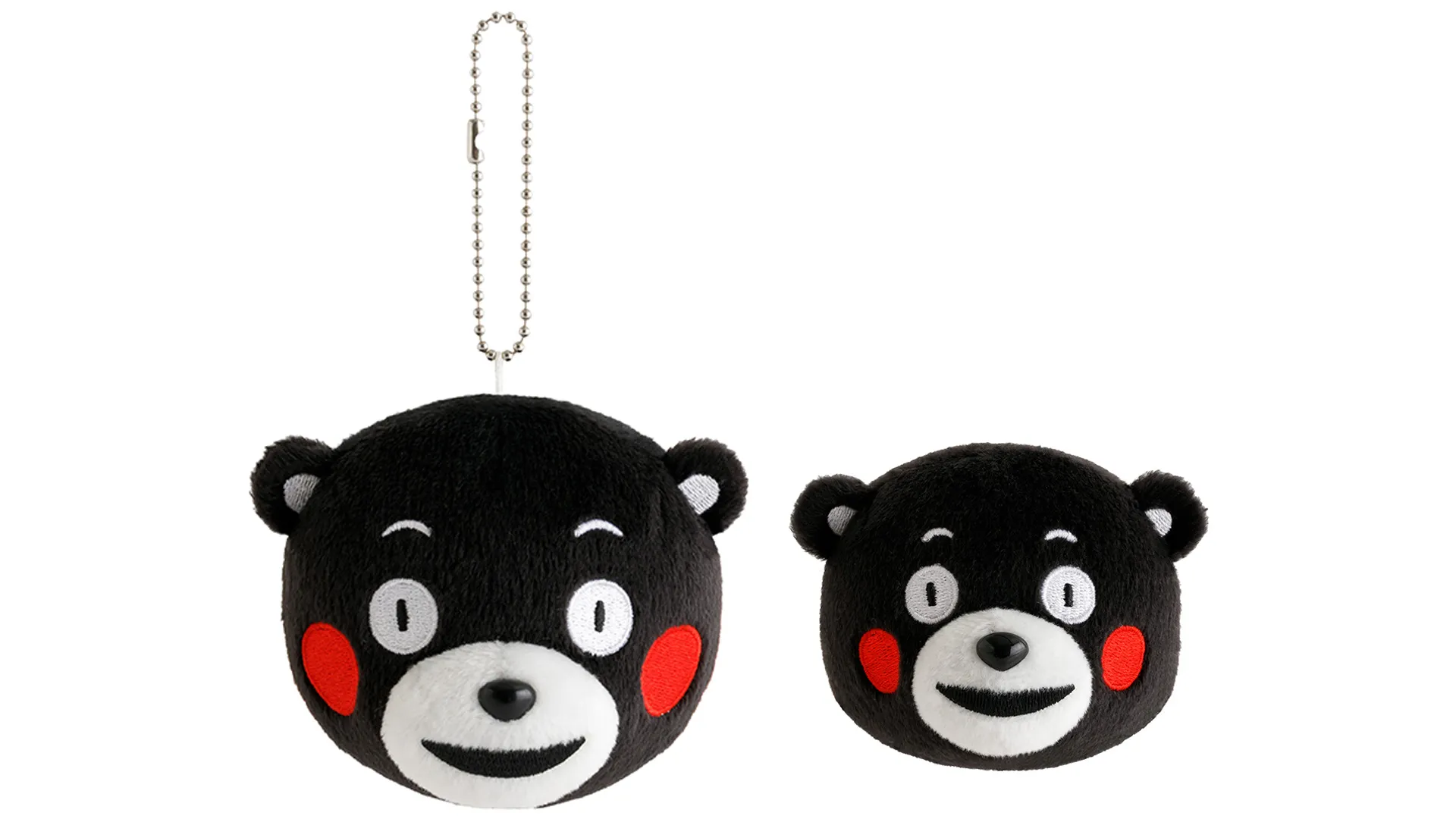 発売日:2026年3月7日(土) (左)くまモンスクエア限定 フェイスキーホルダー「くまモン」 販売価格:1,700円(税込) (サイズ :約H80×W95×D85㎜) (右)くまモンスクエア限定 フェイスマグネット「くまモン」 販売価格:1,500円(税込) (サイズ:約H55×W75×D65㎜)