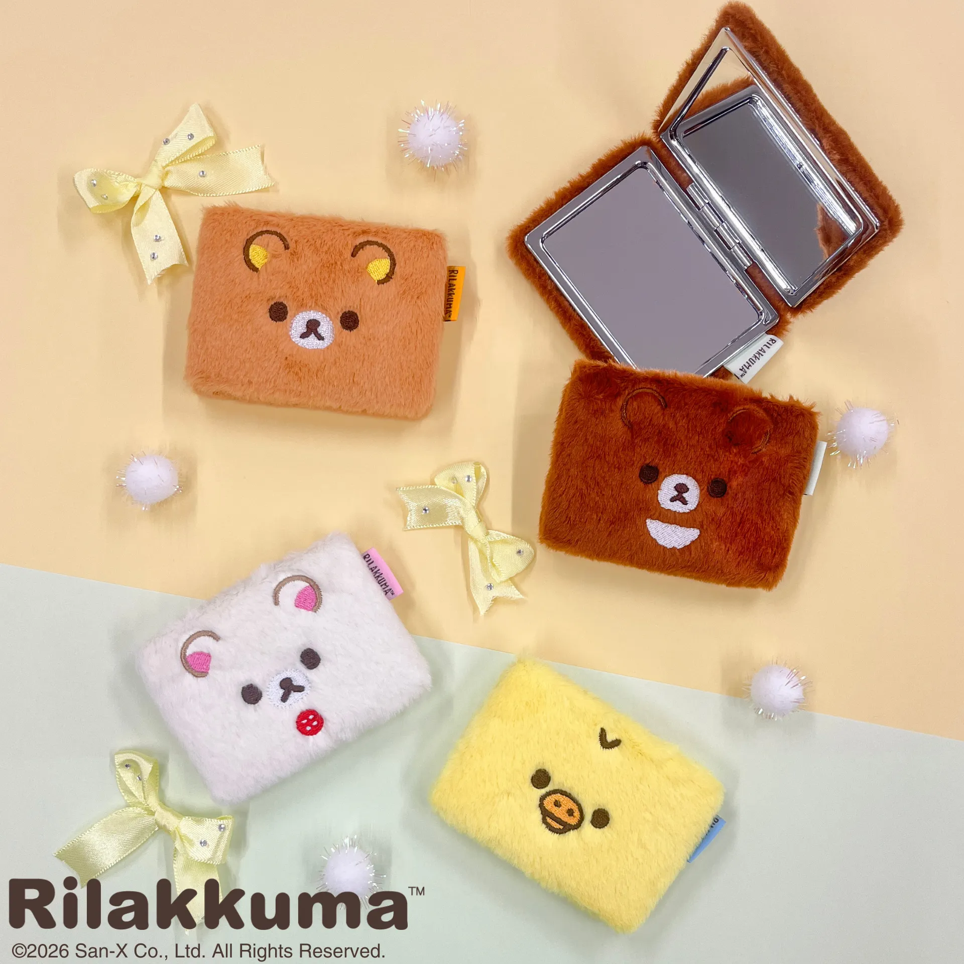 リラックマゆるもふダブルコンパクトミラー2種 もふもふ素材に刺繍がとっても可愛い! 通常&2倍拡大ミラーでメイクの細かいところまでしっかりチェックできます! 丸形はキーチェン付きで色んなところに付けられるよ!