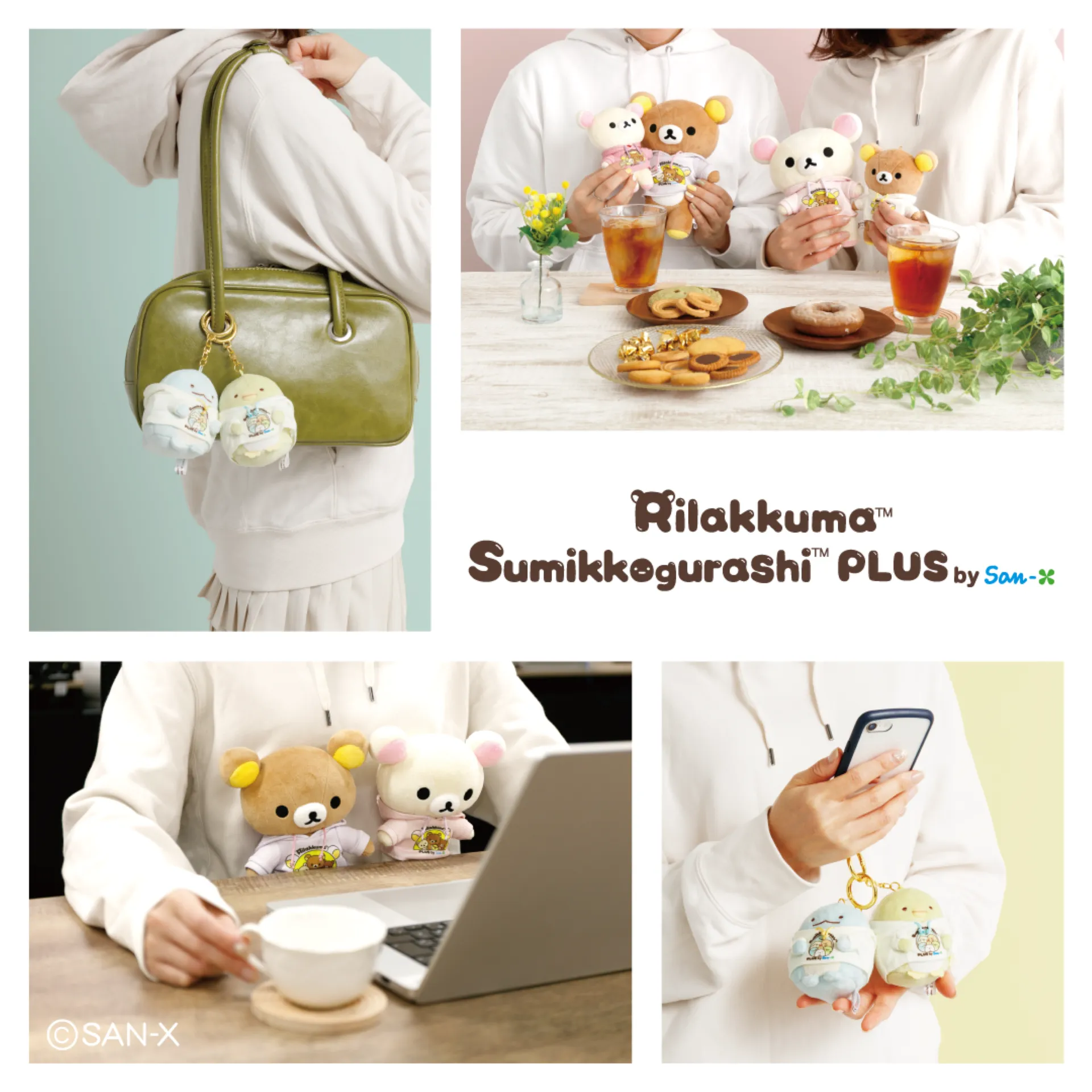 パーカー姿のリラックマとすみっコぐらしたちといっしょに過ごせば、オフィスでの毎日も、お出かけするときも、ともだちとのティータイムも、この春がもっとたのしくなるはず!