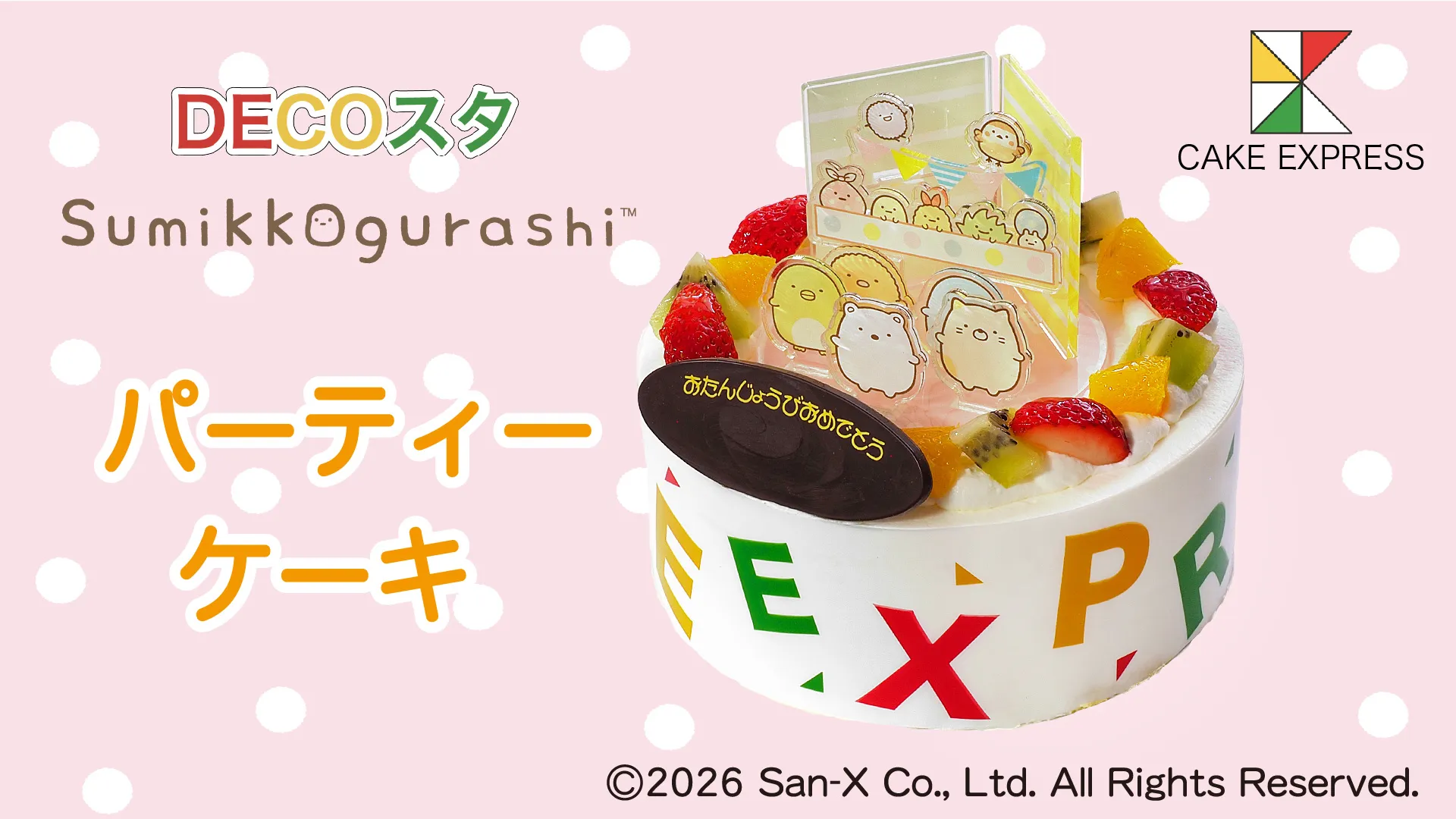 CAKE EXPRESSのデコスタ シリーズにすみっコぐらしが新登場! お誕生日やお祝いの時間を、すみっコたちのパーティーケーキで楽しく過ごそう♪