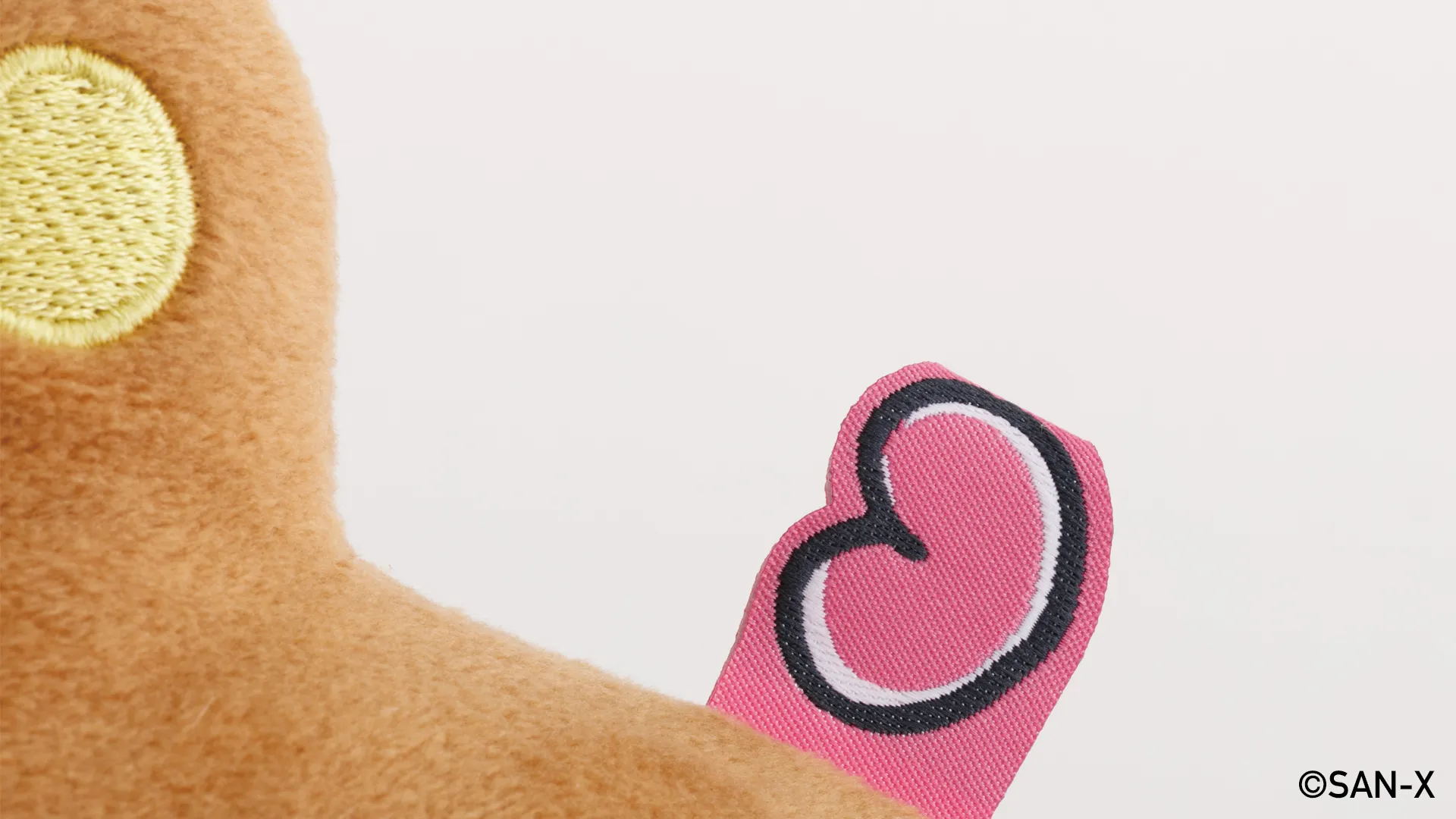 ぬいぐるみにはオリジナルの織りネームが。 ラブ&ピースな大きなハートです。