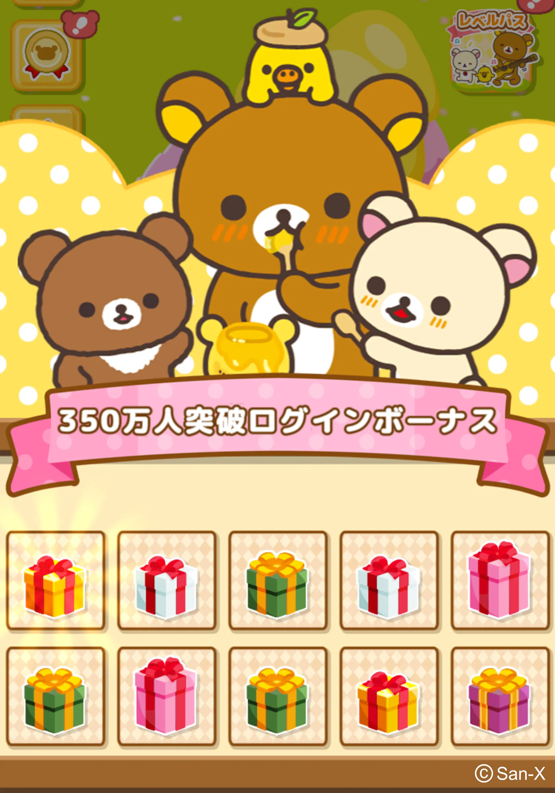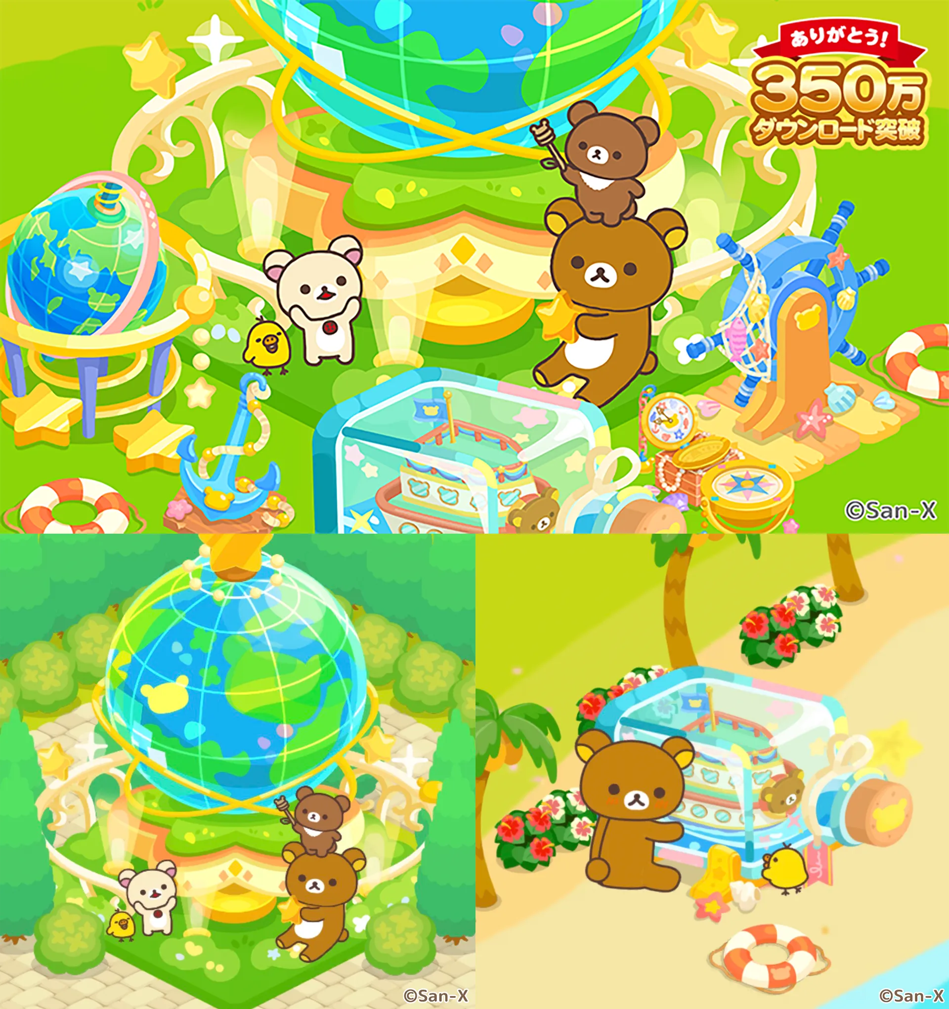 スマートフォン向け農園ゲーム「リラックマ農園」の全世界累計ダウンロード数が、おかげさまで350万件を突破いたしました! いつも遊んでくださっている皆様へ感謝の気持ちを込めて、本日より豪華な記念キャンペーンを開催します☆