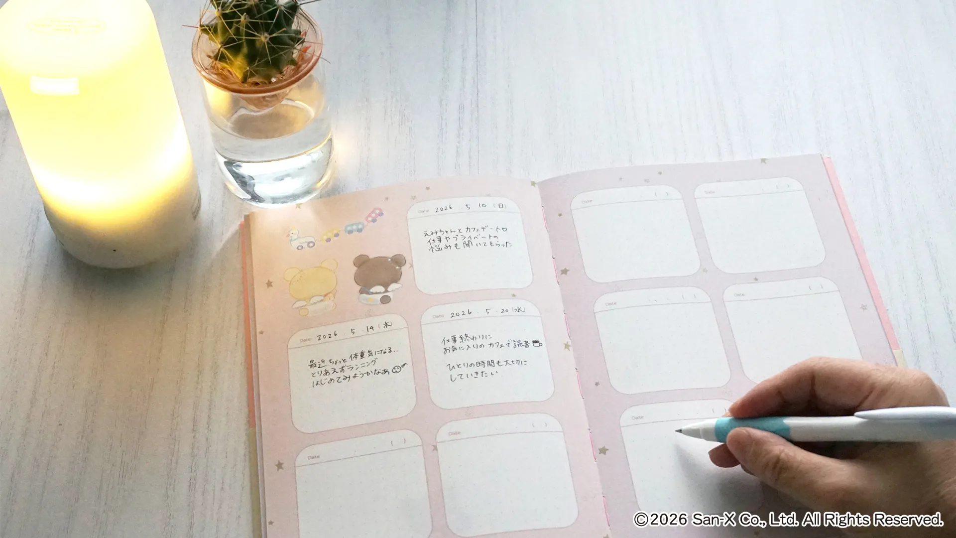商品名:『コリラックマと一緒 のびのび日記帳』『リラックマと一緒 のびのび日記帳』『いしよわちゃんと一緒 のびのび日記帳』 価格:定価 1,760円(本体 1,600円+税10%) 発売日:2026年3月31日(火)