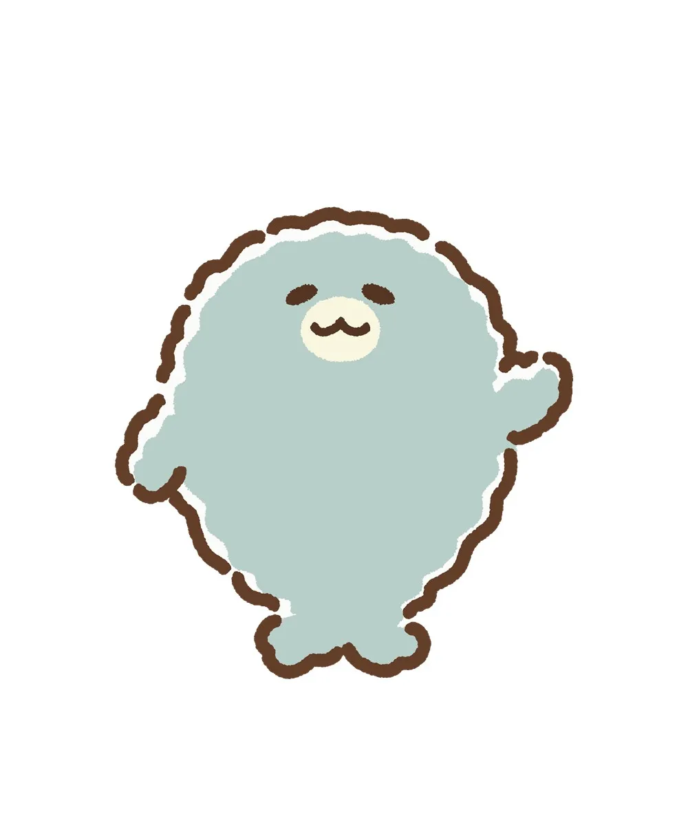 よぼよぼしている2足歩行のあざらし。 ぬくもりを求めてただよっていて、 気づいたら色んな場所にいるみたい。