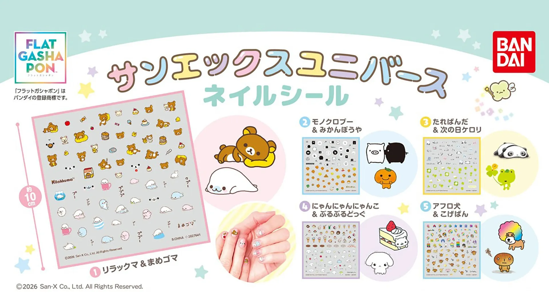 商品名:【フラットガシャポン】サンエックスユニバース ネイルシール 価格:300円(税込) 種類:全5種 発売日:2026年4月第3週より順次発売