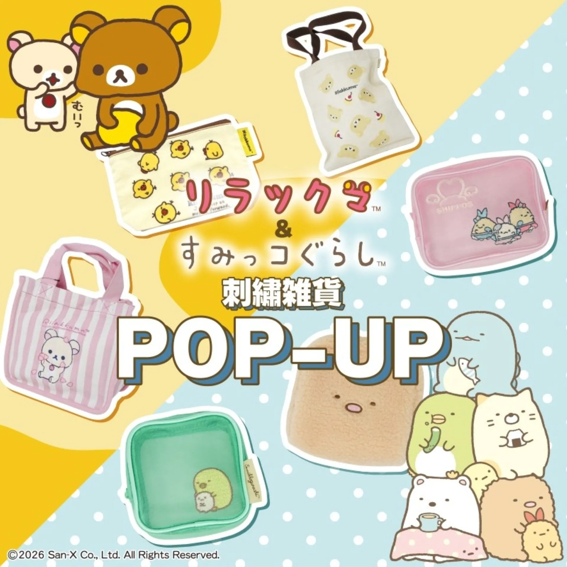 リラックマとすみっコぐらしの刺繡雑貨POP-UP開催中のお知らせ♪ リラックマやすみっコぐらしの刺繍入りトートバッグやポーチなどグッズを取り揃えています♪ 是非足を運んでみてくださいね。