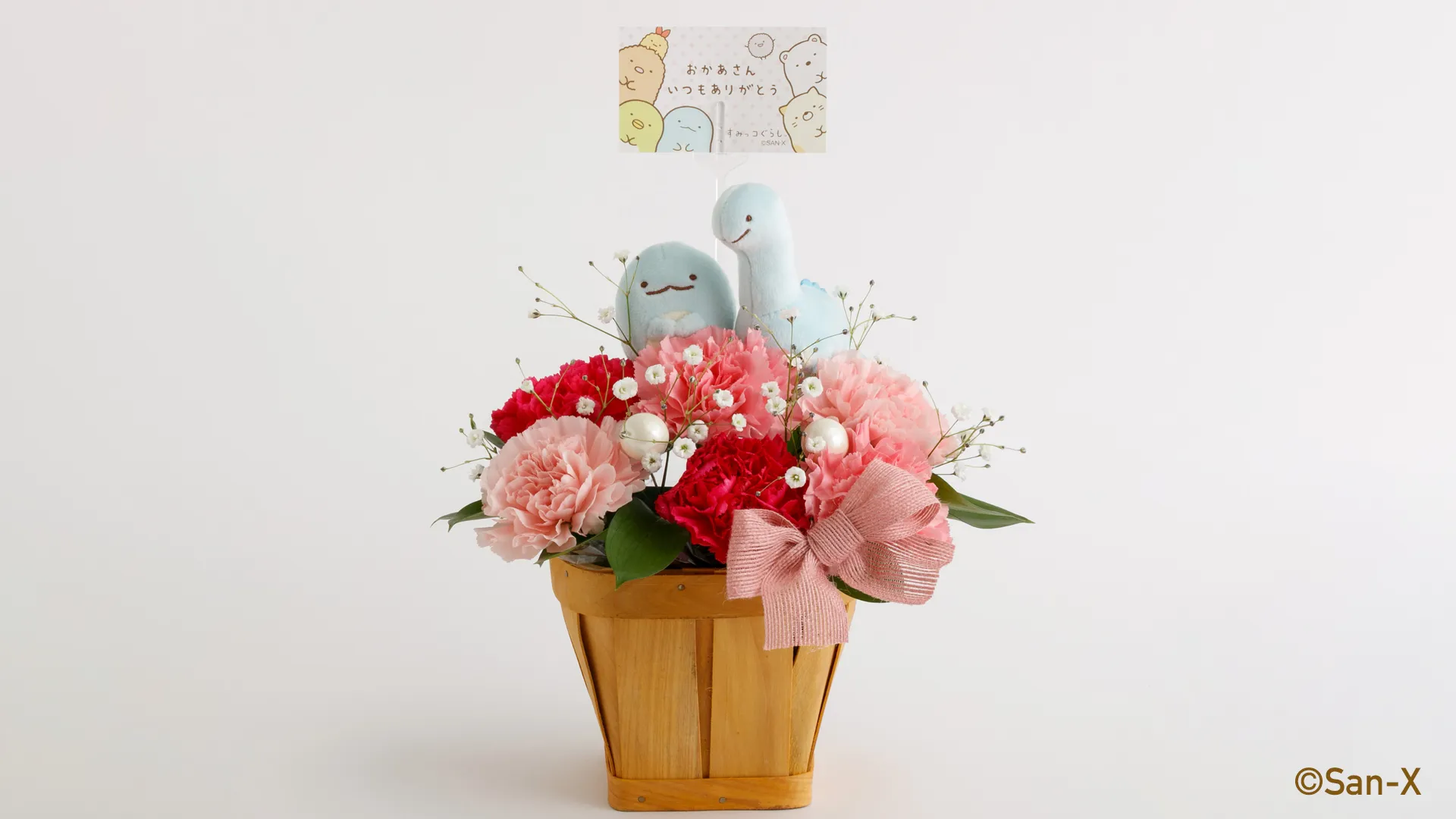 一年に一度の母の日だからこそ、特別なギフトを。 リラックマとすみっコぐらしのフラワーアレンジメントで、お母さんの笑顔が咲く素敵な一日をお届けします。