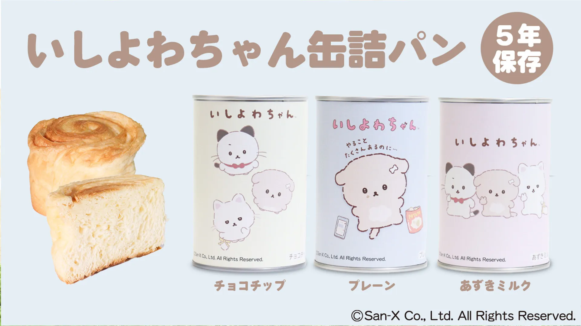 セットの中身にはいしよわちゃん缶デザインの缶詰パン入り! 食べ終わった後はペン立て等にもお使いいただけます。
