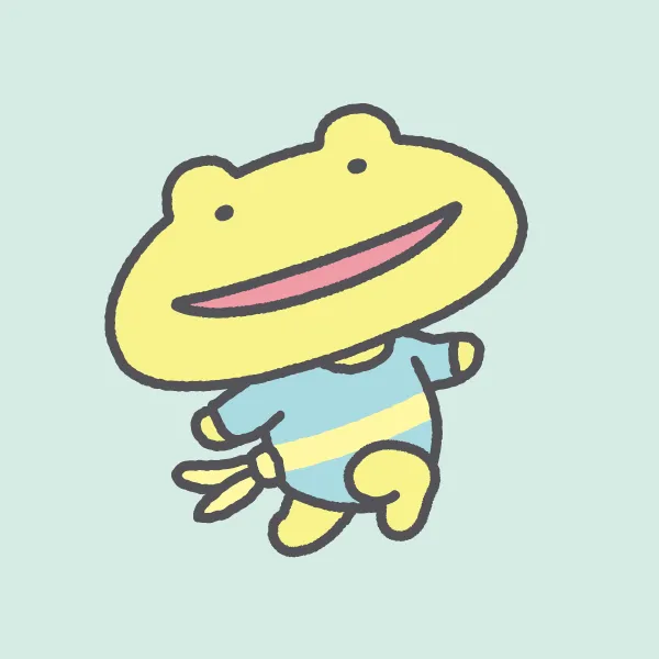 スキップをしながら近づいてくるなぞのカエル。みんなのダンスの先生。